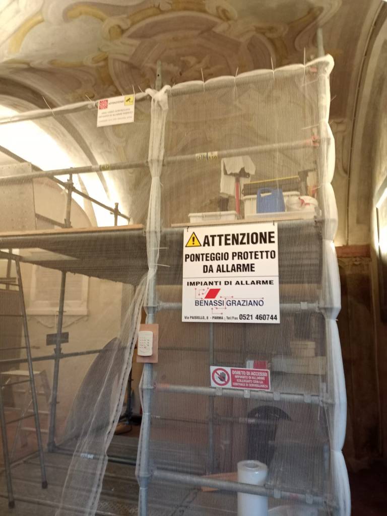 Nella foto: il ponteggio da noi allarmato per Arché Restauri, nell’opera di restauro all’interno del Duomo di Parma, 2023.